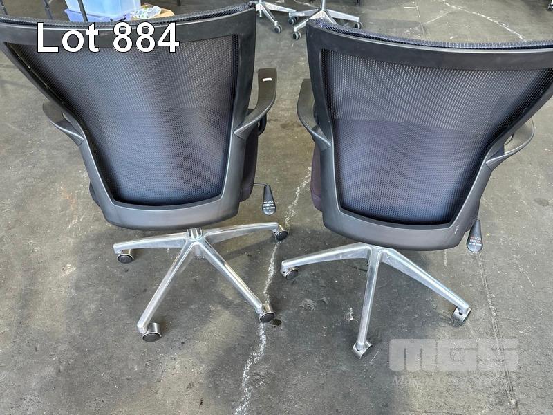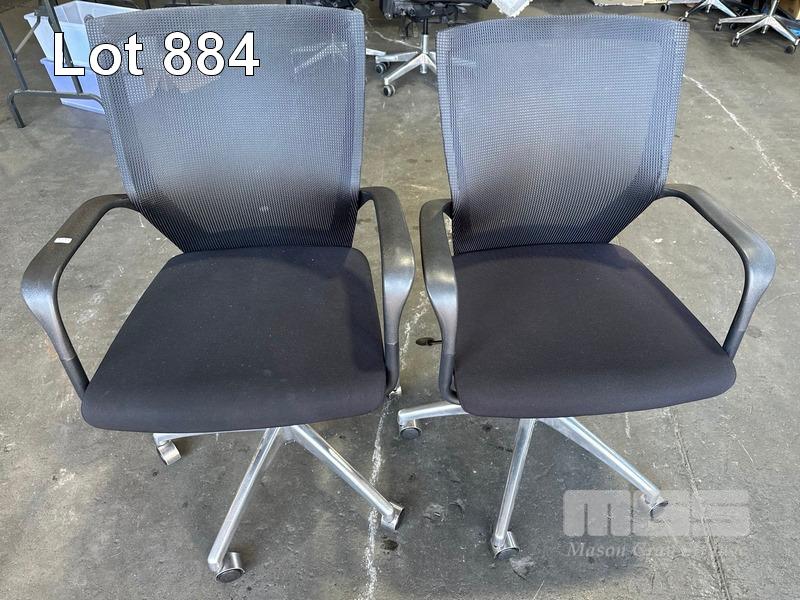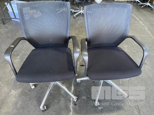 2 x OFFICE ARM CHAIRS, BLACK FABRIC, MESH BACK