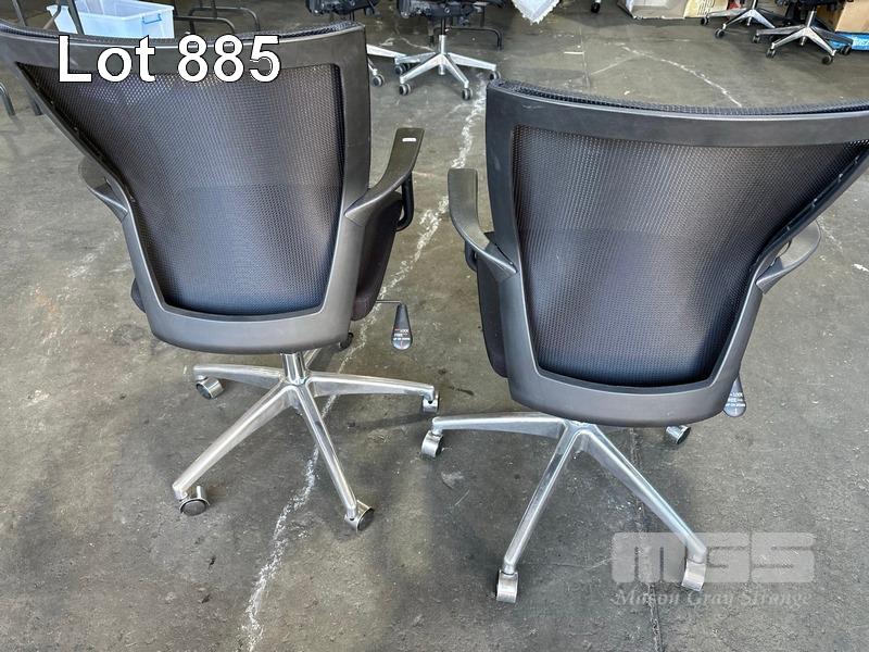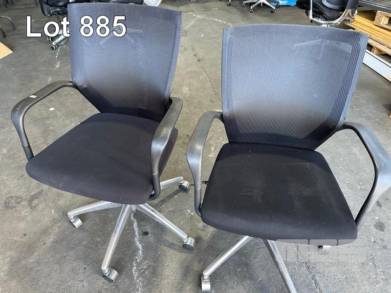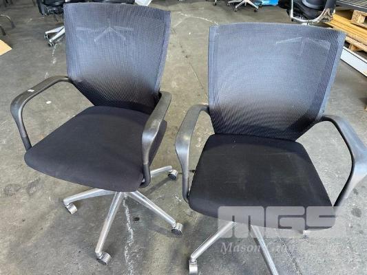 2 x OFFICE ARM CHAIRS, BLACK FABRIC, MESH BACK