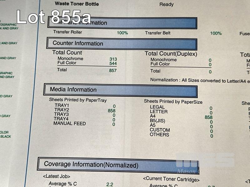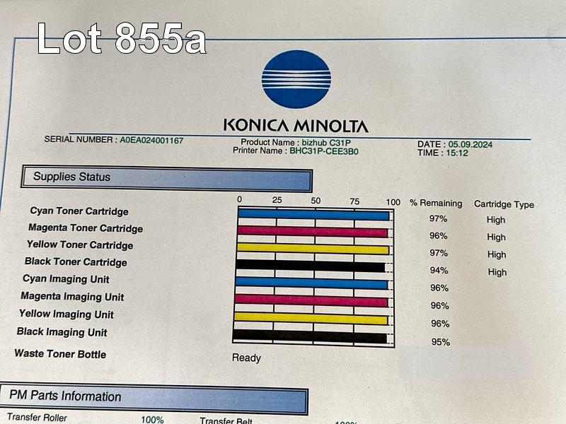 PRINTER, KONICA MINOLTA BIZHUB C31P COLOUR LASER, 544 COLOUR & 313 B&W PAGES SHOWING (TEST PAGE ATTACHED)