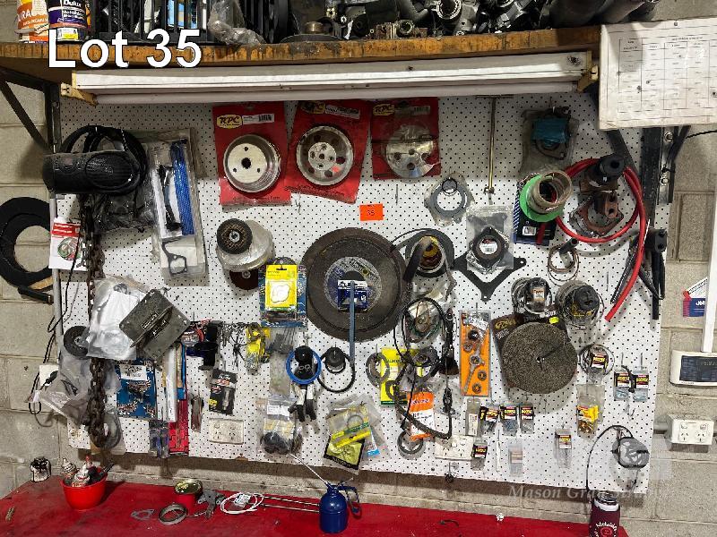 CONTENTS SHADOW BOARD INCLUDING HARDWARE, DISCS, TAPES, PULLEYS, ETC