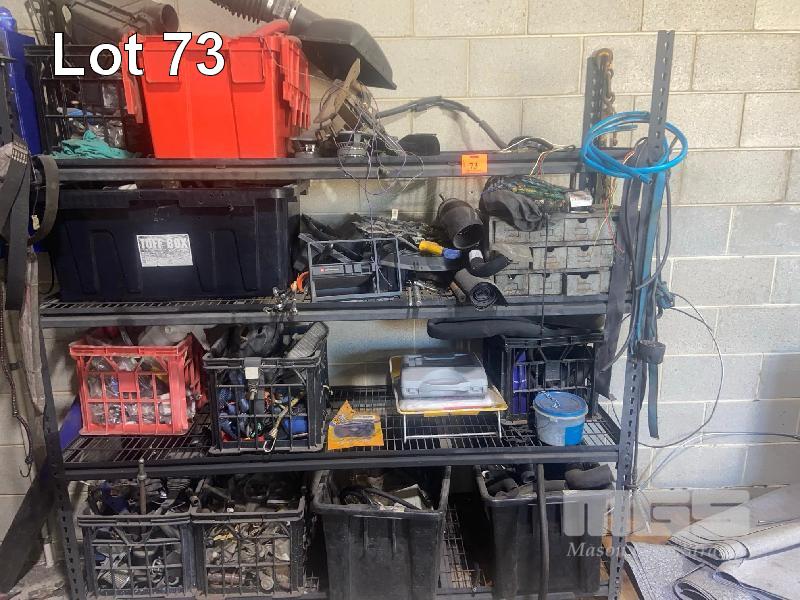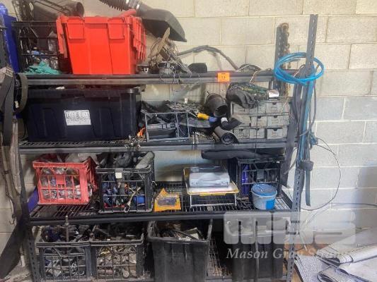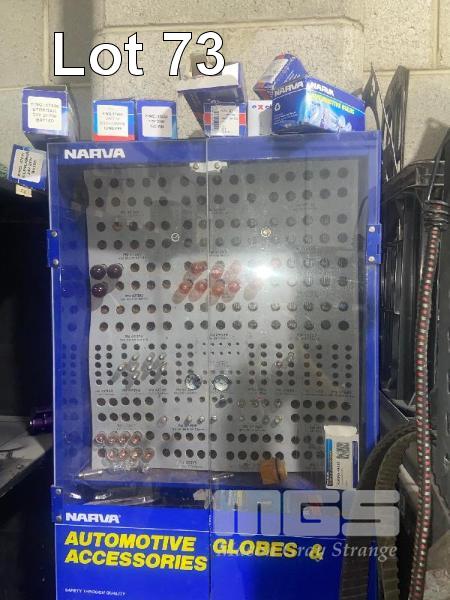 STEEL MESH MODULAR RACK, 4 TIER & CONTENTS ASSORTED CAR PARTS WITH NARVA GLOBE CABINET