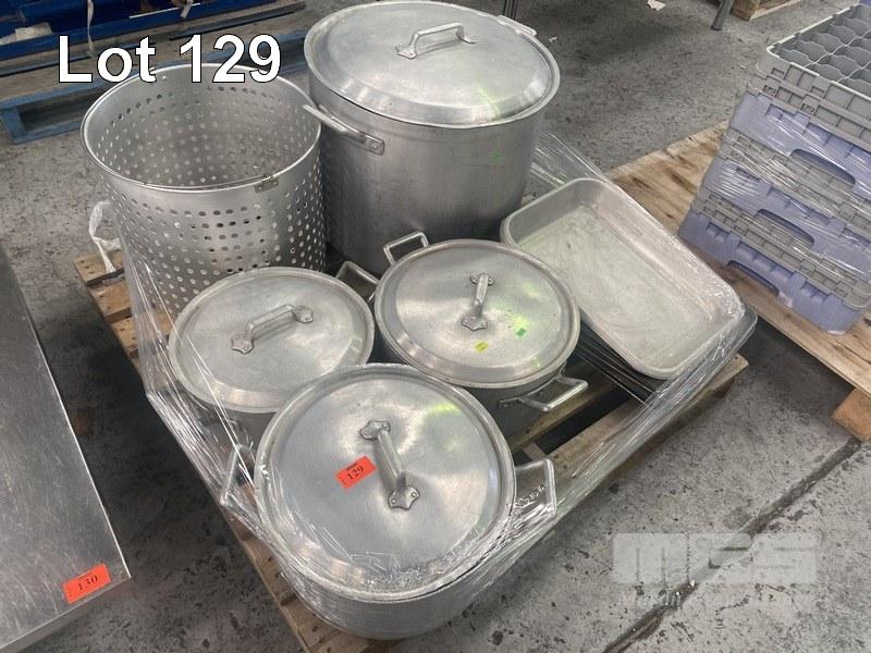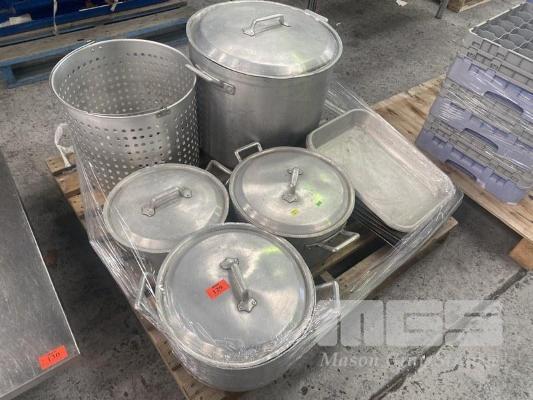 4 x ALUMINIUM STOCK POTS & BAKING TRAYS