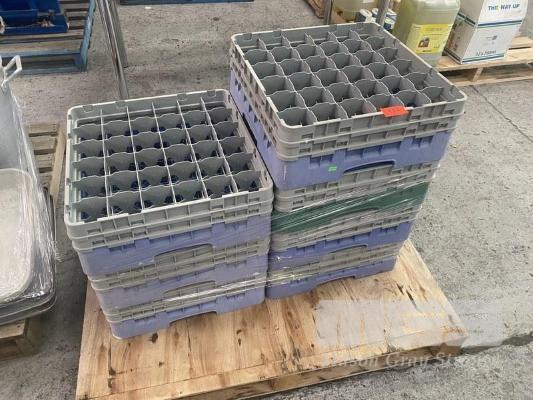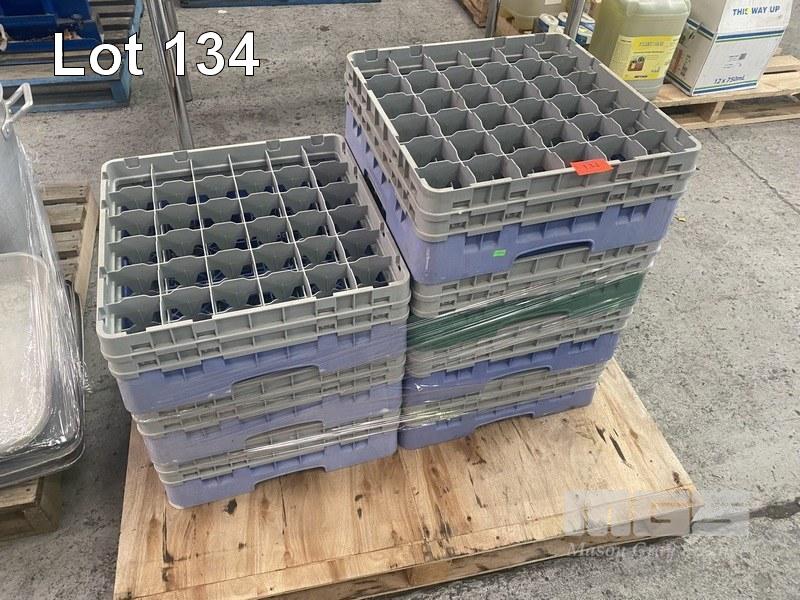 7 x GLASS TRAY RACKS, 36 COMPARTMENT WITH BASE RACKS