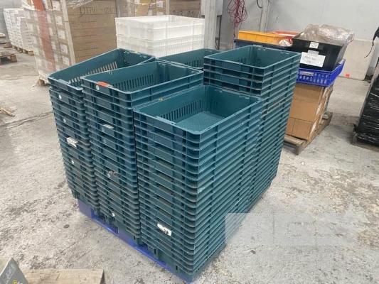 60 x VENTED PLASTIC CRATES, NALLY, GREEEN