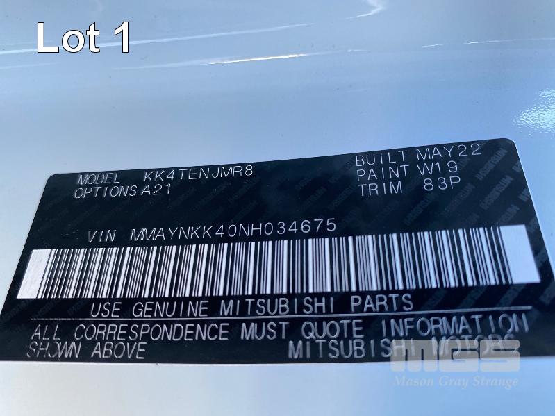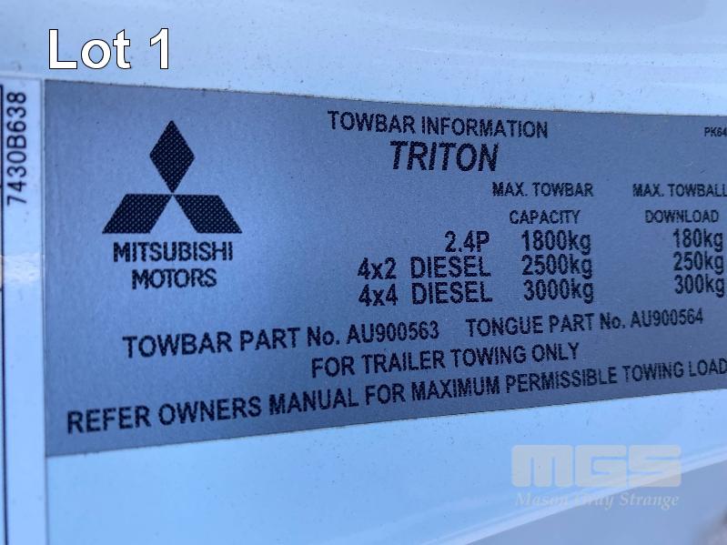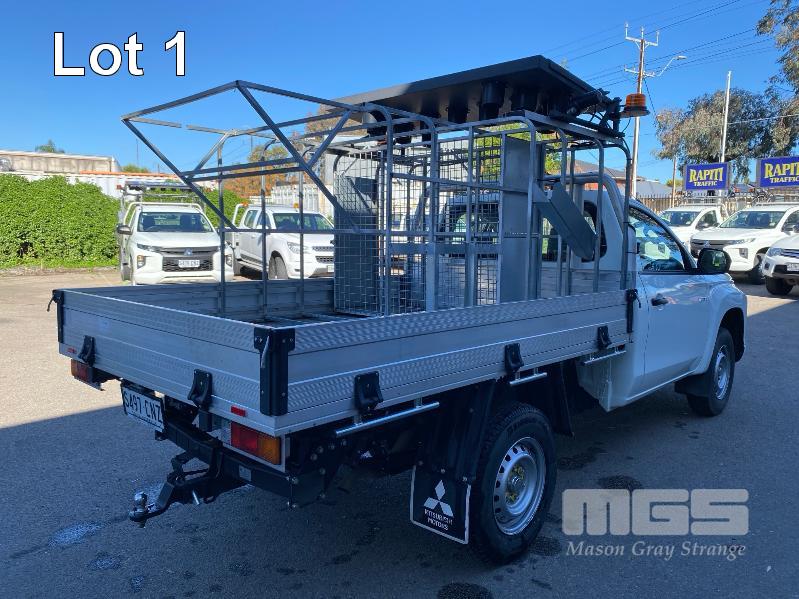2022 MITSUBISHI TRITON MR, SINGLE CAB, TRAFFIC CONTROL T/TOP REG: S497 CNZ (SA) VIN: MMAYNKK40NH034675 ENG: 4G64UAL2554 ODO: 20,845kms SHOWING 2.4LTR PETROL, 5 SPEED MANUAL TRANSMISSION, WHTIE DUCO, 2 DOORS, 2 SEAT, ABS, AIR BAG, AIR CON, ALLOY TRAY, BLUETOOTH, CD PLAYER, CENTRAL LOCKING, CRUISE CONTROL, IMMOBILISER, POWER STEERING, POWER WINDOWS, SHELVING, SPARE WHEEL, TOW BAR, TRACTION CONTROL, WARNING LIGHTS, DUAL BATTERIES REVERSE CAMERA FITTED WITH TRAFFIC CONTROL ILLUMINATED ARROW SIGN POWER LIFT & REMOTE CONTROL WITH ROAD SIGN CARRY RACK KEY #40 (WITH PAPERS, WITH 1 KEY/S, WITH OWNER'S MANUAL, WITH SERVICE BOOKS)