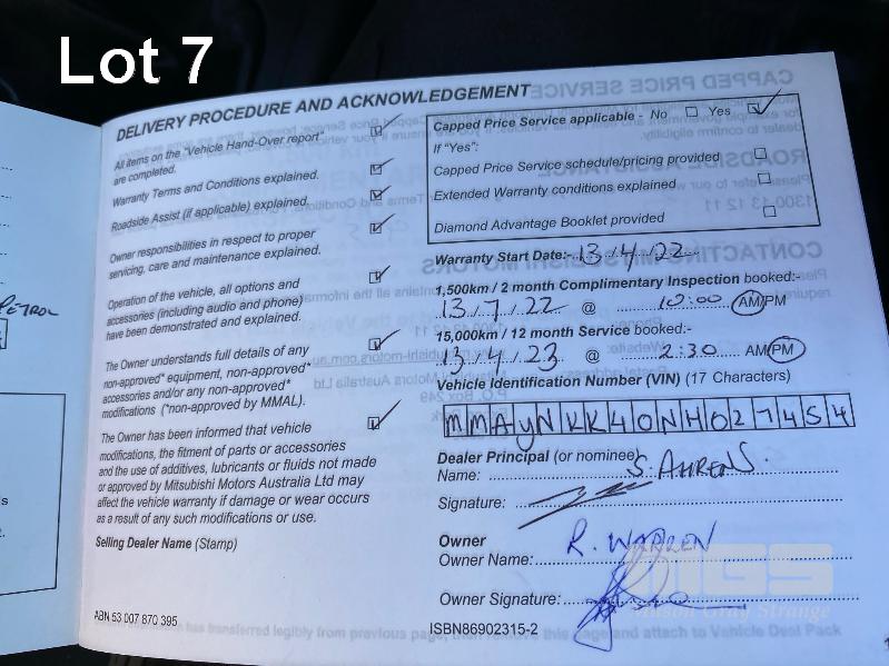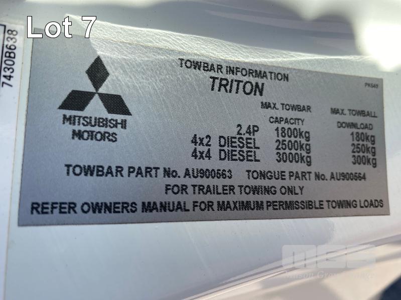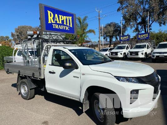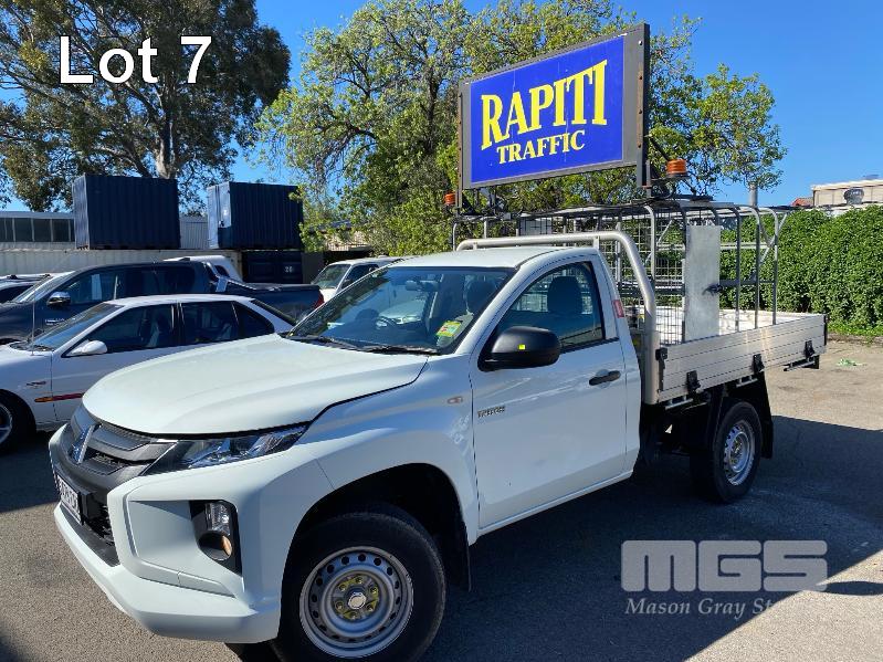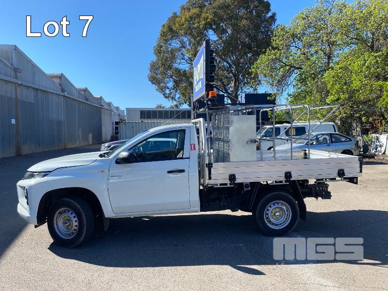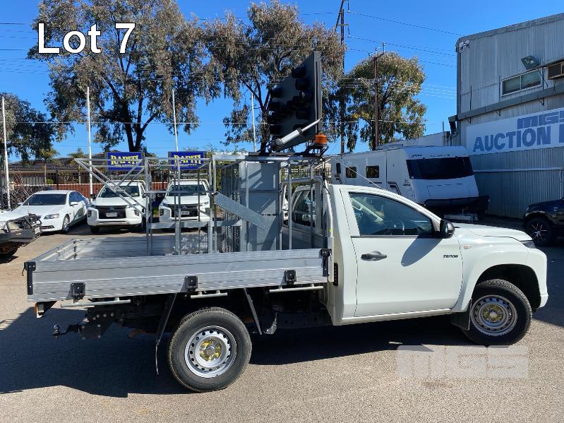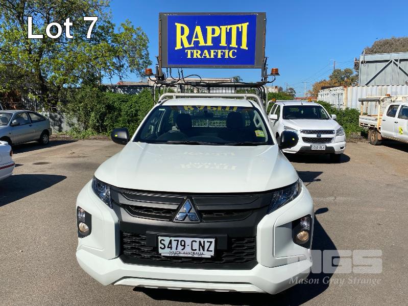 2022 MITSUBISHI TRITON MR, SINGLE CAB, TRAFFIC CONTROL T/TOP REG: S479 CNZ (SA) VIN: MMAYNKK40NH027454 ENG: 4G64UAK7758 ODO: 30,121kms SHOWING 4 CYLINDER EFI, 5 SPEED MANUAL TRANSMISSION, WHITE DUCO, 2 DOORS, 2 SEAT, ABS, AIR BAG, AIR CON, ALLOY TRAY, BLUETOOTH, CD PLAYER, CENTRAL LOCKING, CRUISE CONTROL, IMMOBILISER, POWER STEERING, POWER WINDOWS, SPARE WHEEL, TOW BAR, TRACTION CONTROL, WARNING LIGHTS, DUAL BATTERIES REVERSE CAMERA FITTED WITH TRAFFIC CONTROL ILLUMINATED ARROW SIGN POWER LIFT & REMOTE WITH ROAD SIGN CARRY RACK KEY #47 (WITH PAPERS, WITH 1 KEY/S, WITH OWNER'S MANUAL, WITH SERVICE BOOKS)