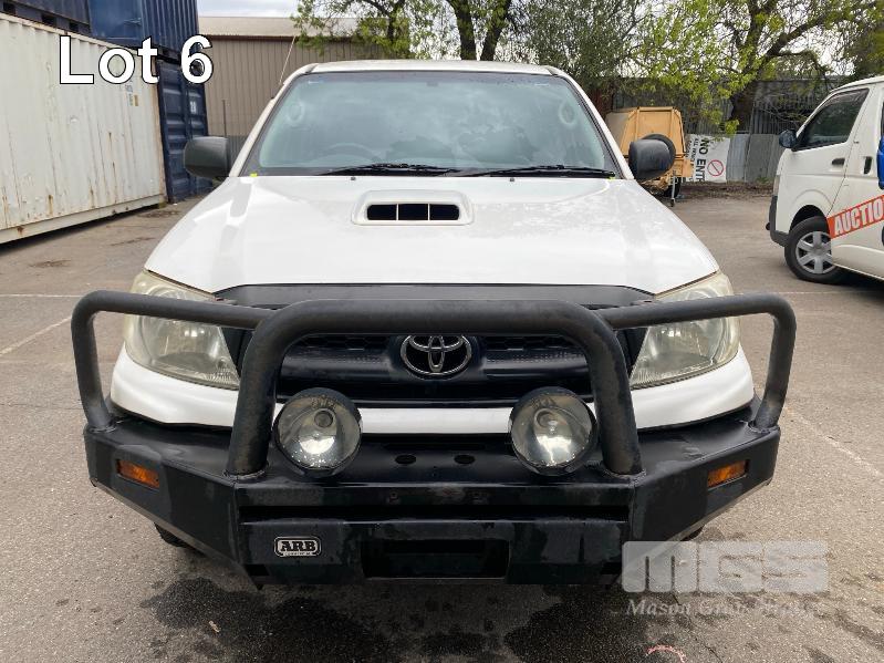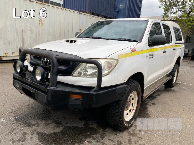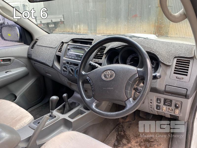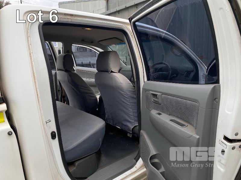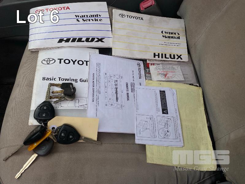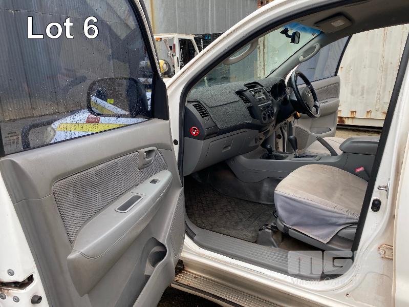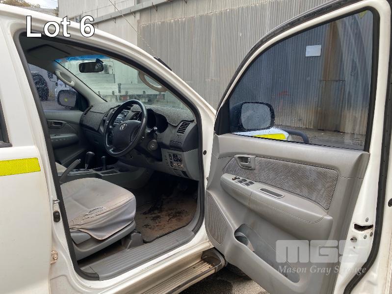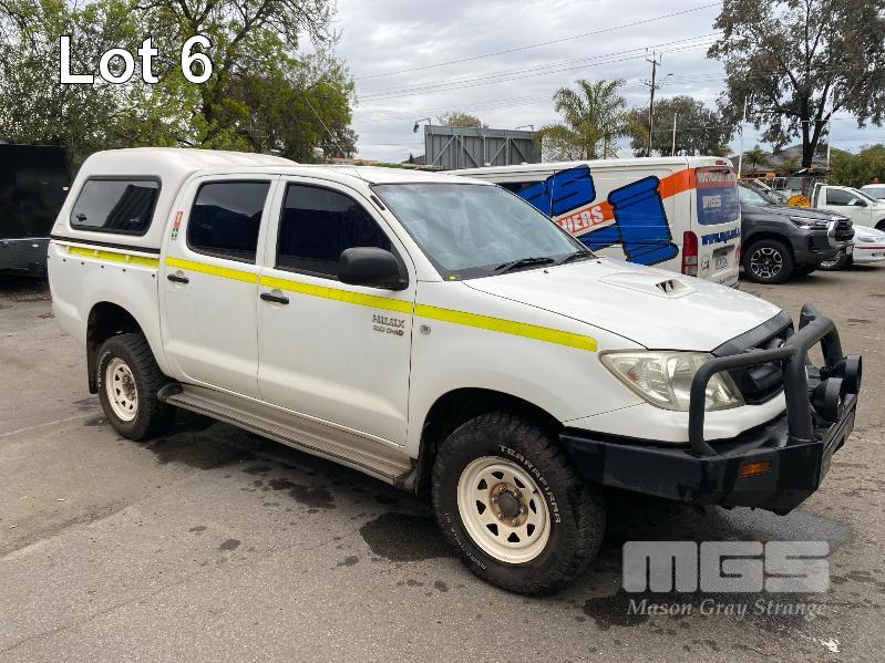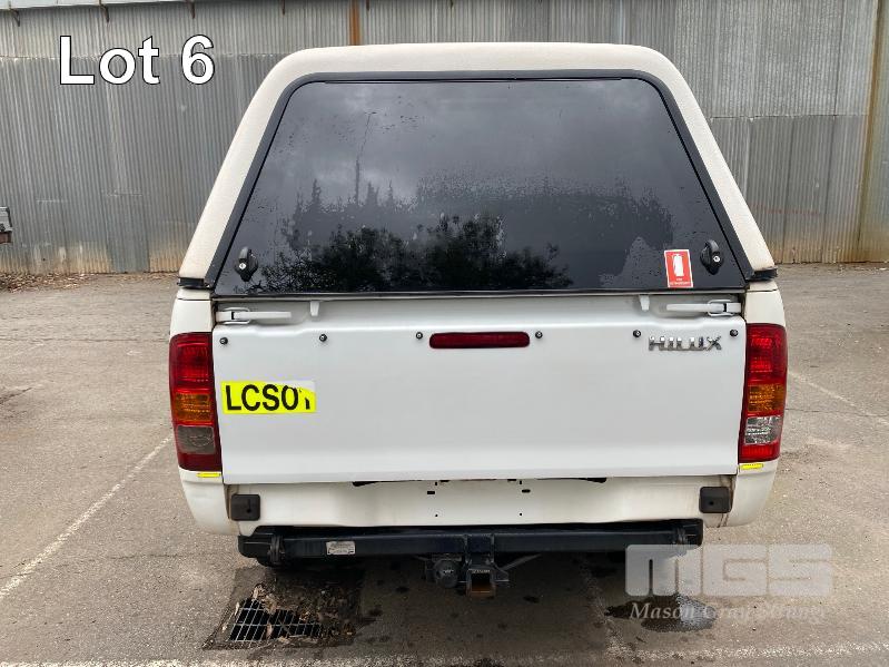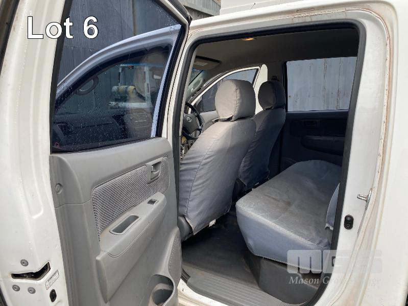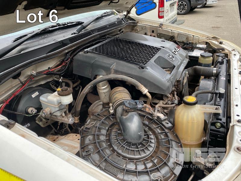 2011 TOYOTA HILUX KUN26R-PRPDYQ 150 SERIES DUAL CAB UTE 4x4 REG: NO PLATES VIN: MR0FZ22G001052486 ENG: 1KD5378773 ODO: 280,340kms SHOWING 3.0 LITRE TURBO DIESEL, AUTOMATIC TRANSMISSION, WHITE DUCO, 4 DOORS, 5 SEAT, 4x4 AIR BAG, AIR CON, BULL BAR, CD PLAYER, CENTRAL LOCKING, CRUISE CONTROL, DECALS, IMMOBILISER, POWER STEERING, POWER WINDOWS, SIDE STEP, SPARE WHEEL, SPOT LIGHTS, FLEXIGLASS CANOPY WITH 3 x GAS LIFT WINDOWS BATTERY ISOLATION SWITCH KEY #11 (WITH 4 KEY/S, WITH OWNER'S MANUAL, WITH SERVICE BOOKS)