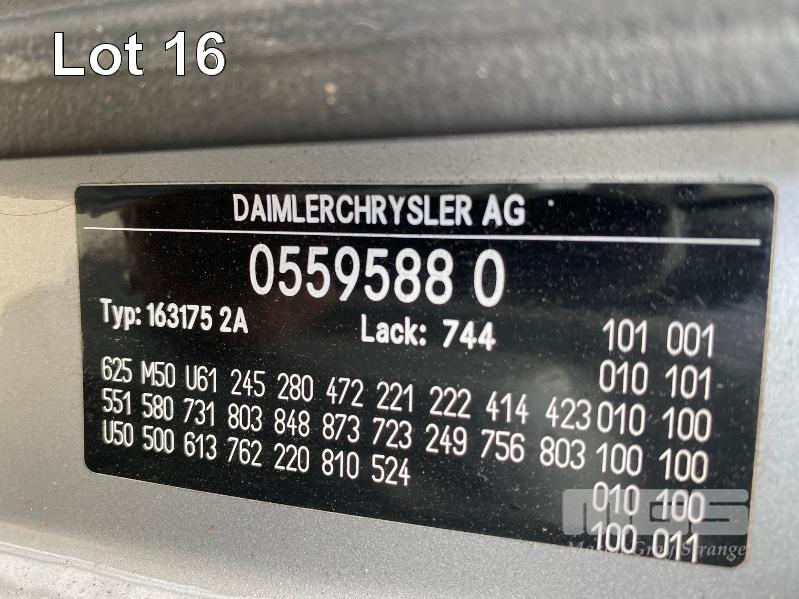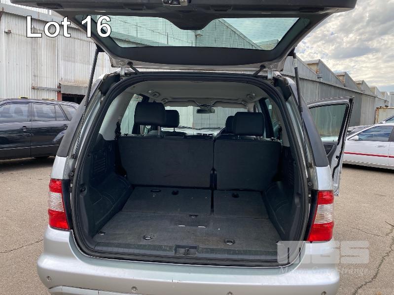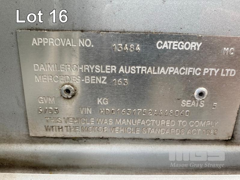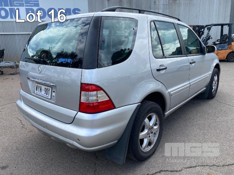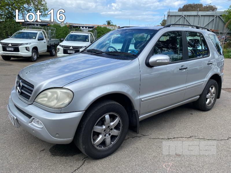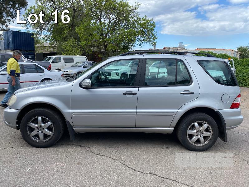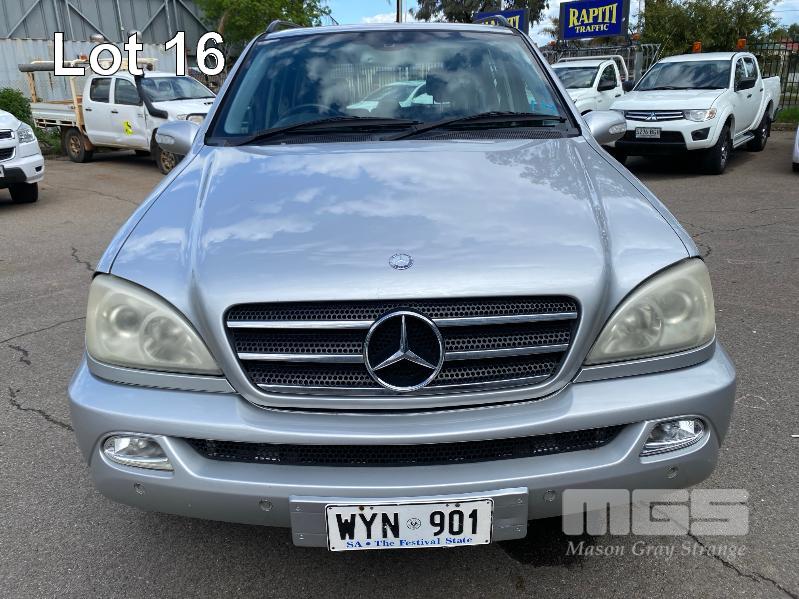 2003 MERCEDES BENZ ML500 SUV REG: WYN 901 (SA) VIN: WDC1631752A448060 ENG: 11396530493446 ODO: 185,296kms SHOWING 5.0 LITRE V8 PETROL, AUTOMATIC TRANSMISSION, SILVER DUCO, 4 DOORS, 5 SEAT, AWD AIR CON, ALLOY WHEELS, CD PLAYER, CENTRAL LOCKING, IMMOBILISER, POWER WINDOWS, SPARE WHEEL, SUNROOF, KEY #34 (WITH PAPERS, WITH 2 KEY/S, WITH OWNER'S MANUAL, WITH SERVICE BOOKS) CONDITION: ENGINE - ENGINE WARNING LIGHT IS ON