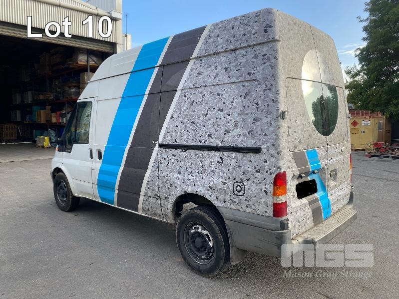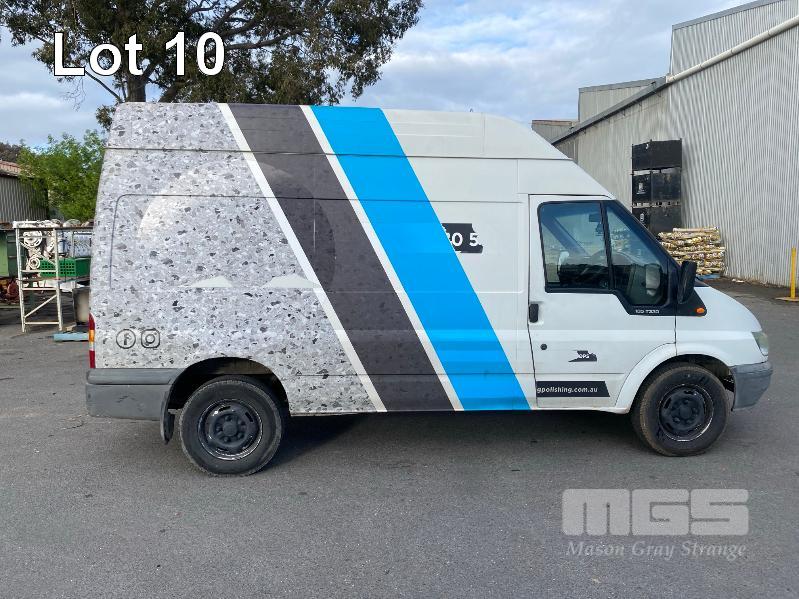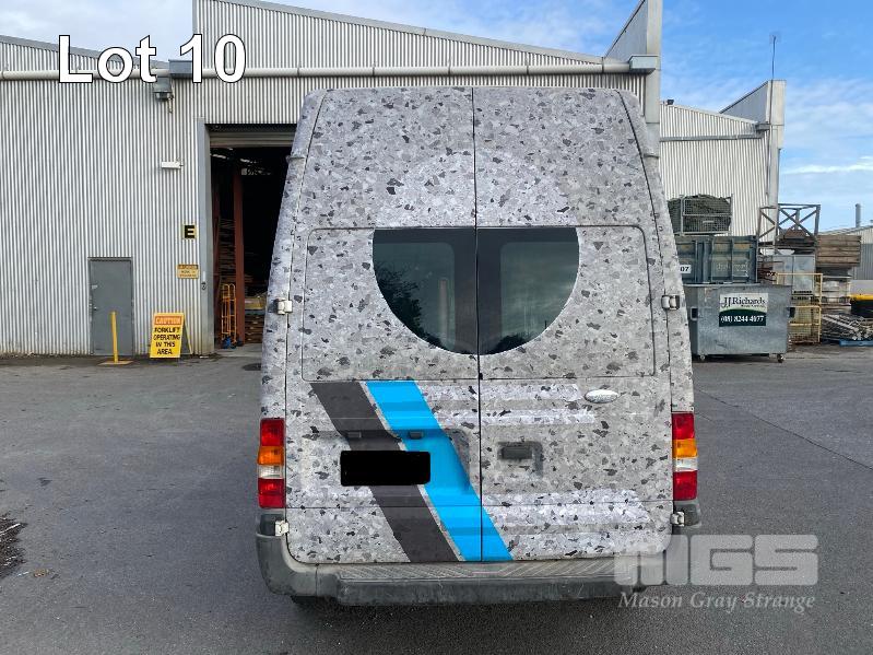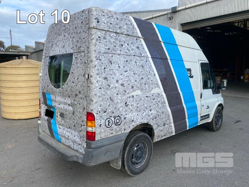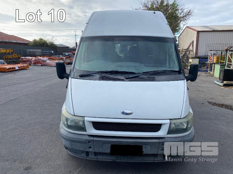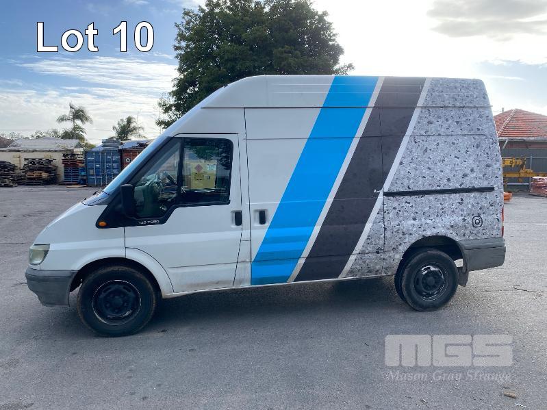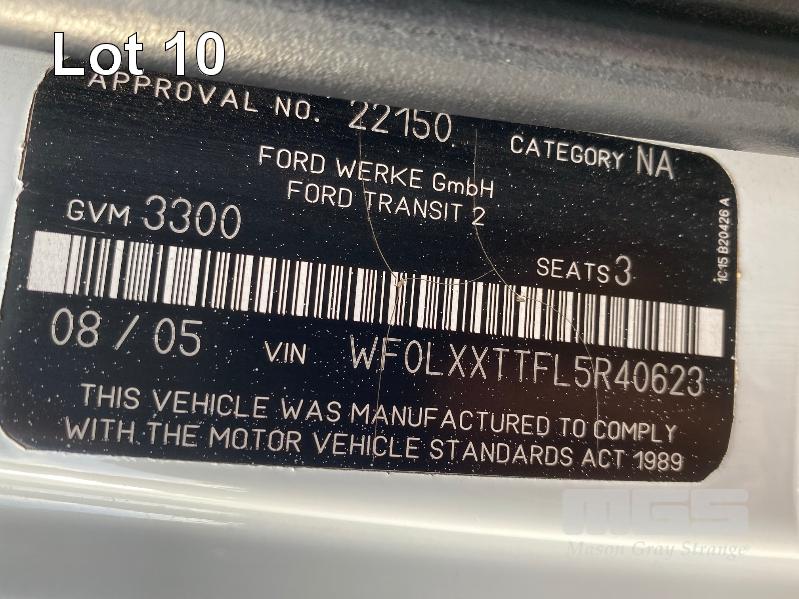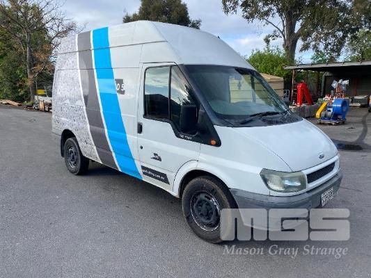 2005 FORD TRANSIT 2 135-T350 VAN REG: NO PLATES VIN: WF0LXXTTFL5R40623 ENG: H9FA5D32760 ODO: 284,057kms SHOWING 2.4 LITRE DIESEL, MANUAL TRANSMISSION, WHITE/BLUE/GREY, 2 DOORS, 3 SEAT, AIR CON, CARGO BARRIER, CD PLAYER, CENTRAL LOCKING, DECALS, IMMOBILISER, POWER STEERING, POWER WINDOWS, SPARE WHEEL, GVM: 3,300kg KEY #4 (WITH 1 KEY/S)