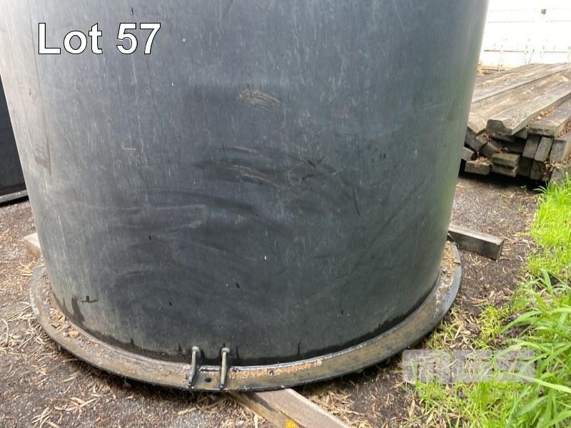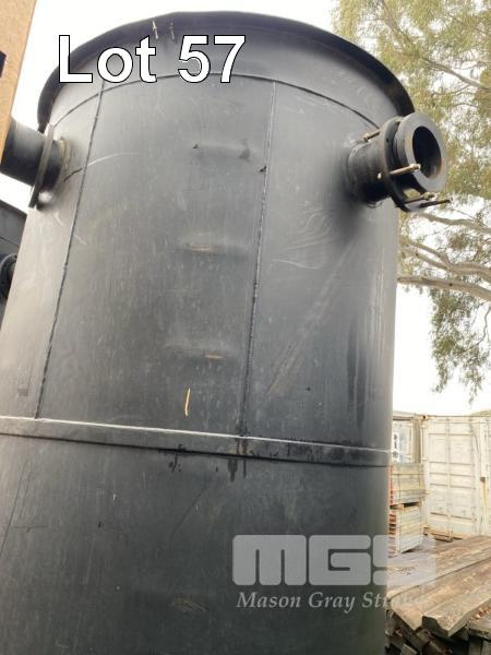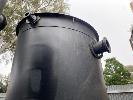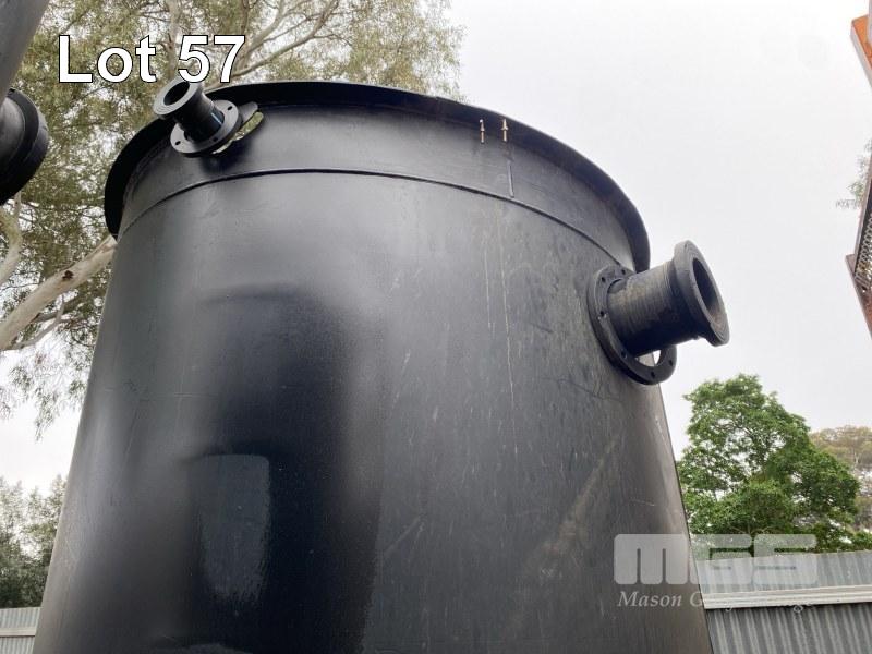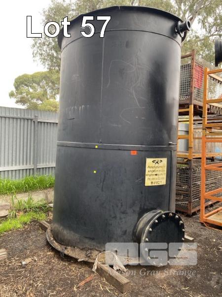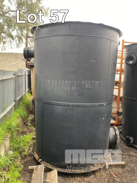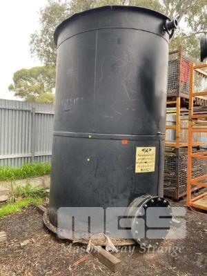 POLY TANK, OPEN TOP, MANUFACTURED BY KINGSTON BRIDGE ENGINEERING PTY LTD BLACK POLYETHYLENE CONSTRUCTION DIAMETER: 2100 x 3260mm (H) APPROX FITTED WITH 1 x BOTTOM FLANGED OUTLET, 600mm DIAMETER 3 x TOP INLETS, 2 @ 220mm DIAMETER & 1 @ 100mm