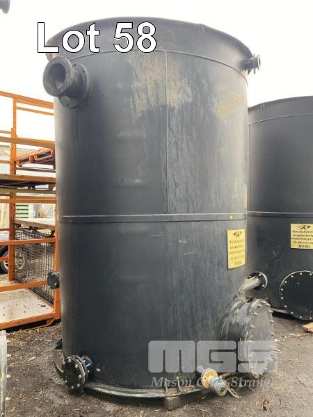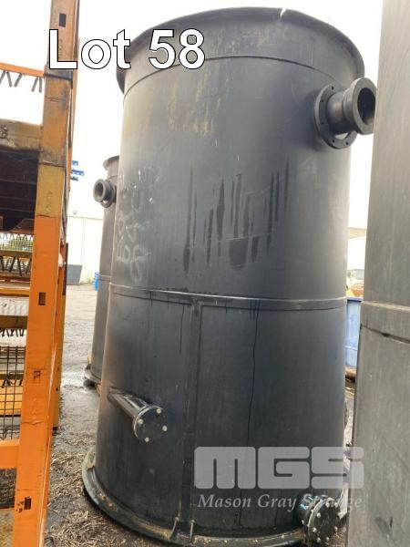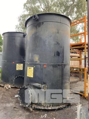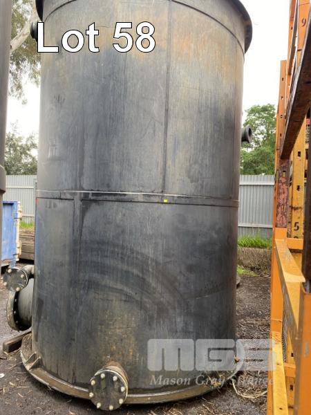 POLY TANK, OPEN TOP, MANUFACTURED BY KINGSTON BRIDGE ENGINEERING PTY LTD BLACK POLYETHYLENE CONSTRUCTION DIAMETER: 2100 x 3260mm (H) APPROX FITTED WITH 6 x BOTTOM FLANGED OUTLETS, 1 @ 600mm, 2 @ 150mm, 2 @ 100mm & 1 @ .60mm DIAMETER 2 x TOP INLETS, 1 @ 100mm & 1 @ 220mm DIAMETER