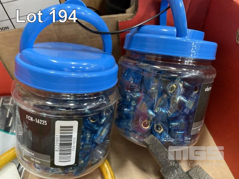 2 x CONTAINERS BLUE POINT ELECTRICAL CONNECTORS, HINGES, ETC