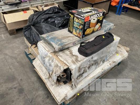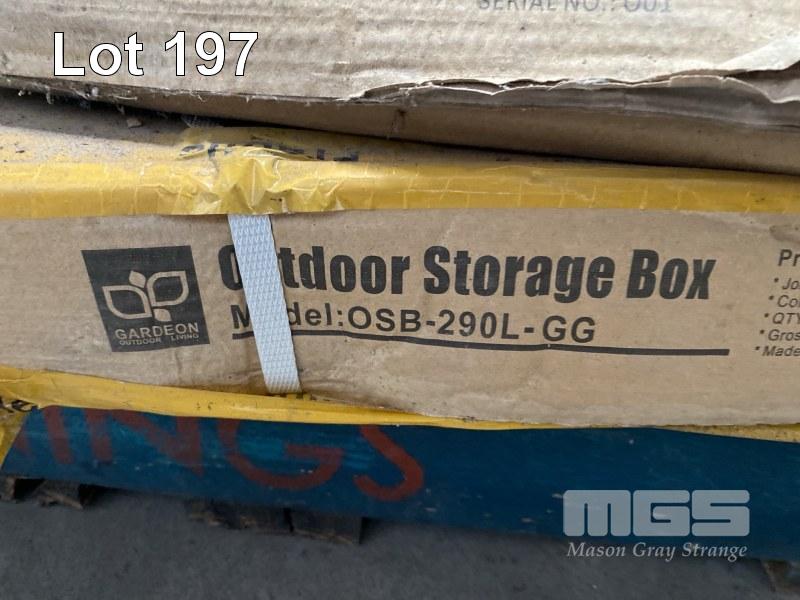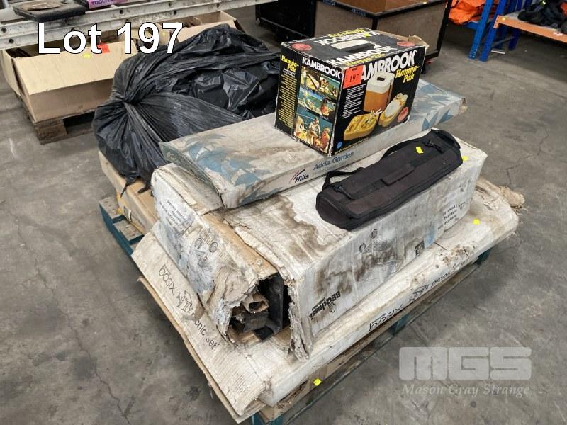 KAMPAPAK 4 BURNER BBQ, HILLS GARDEN BED, PICNIC SET & 3 x PLASTIC STORAGE BOXES,