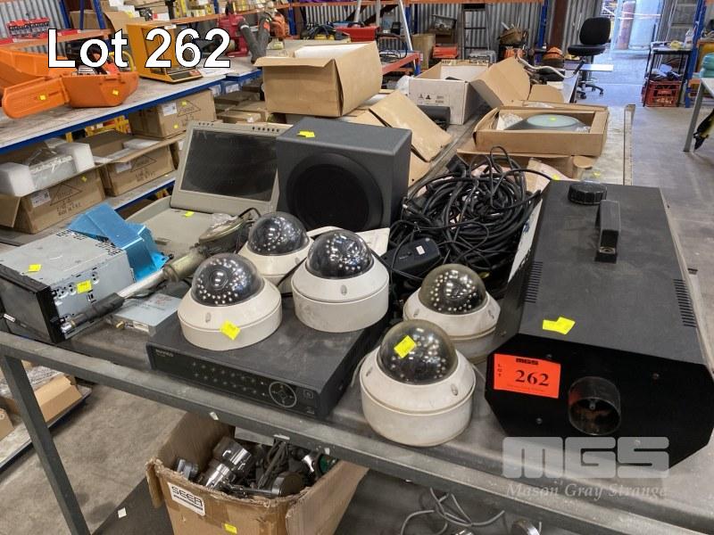 CAR STEREO, DVD PLAYER, SECURITY CAMERAS, SMOKE MACHINE, SUB WOOFER, ETC, 1 x SHELF