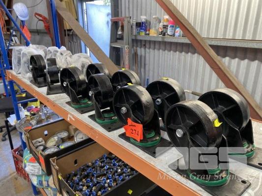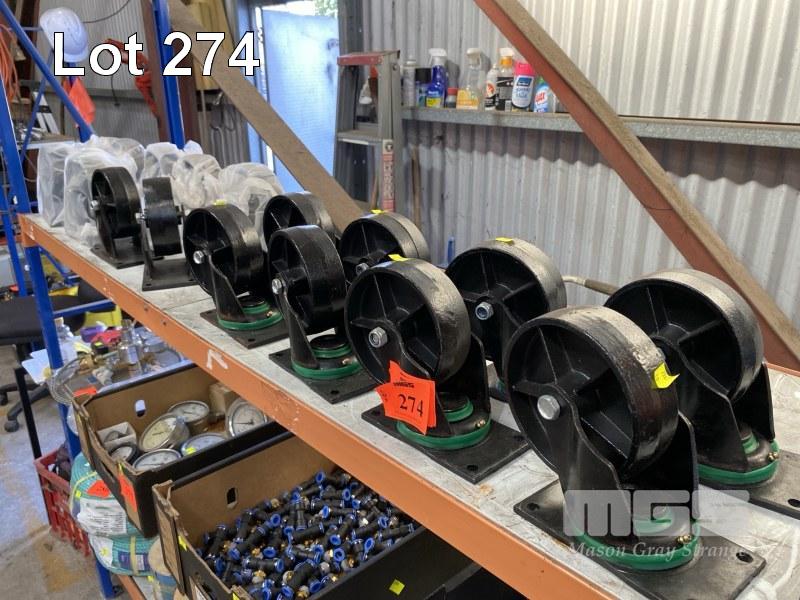 & 8 x FIXED CASTOR WHEELS, BLACK, 150mm (D), HEAVY DUTY