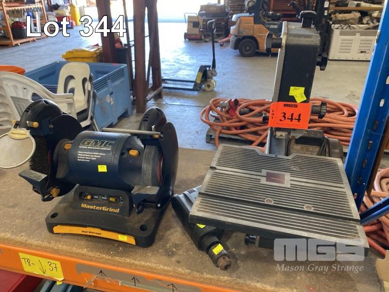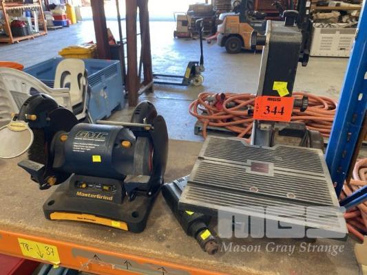 RYOBI BANDSAW, 100mm, BLACK & DECKER DRILL & GMC BENCH GRINDER, 8", 240V