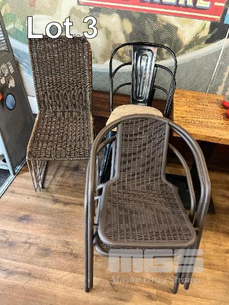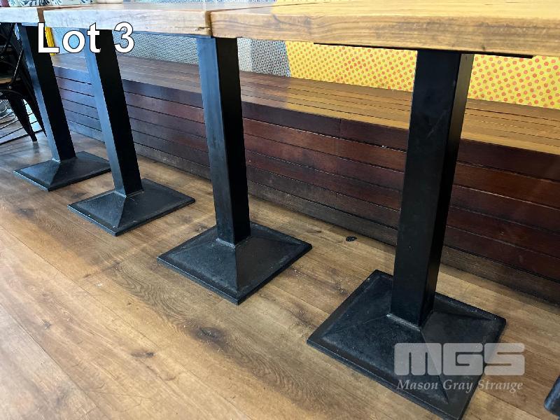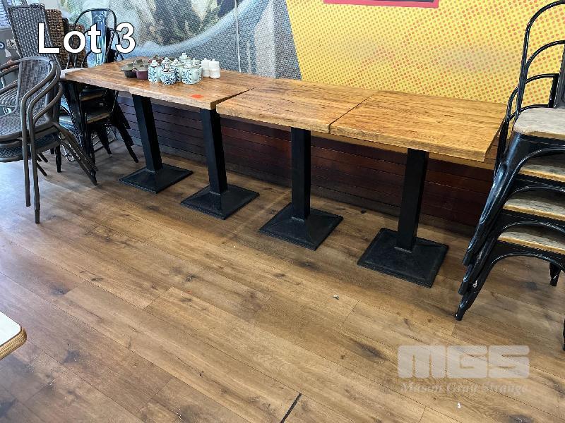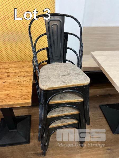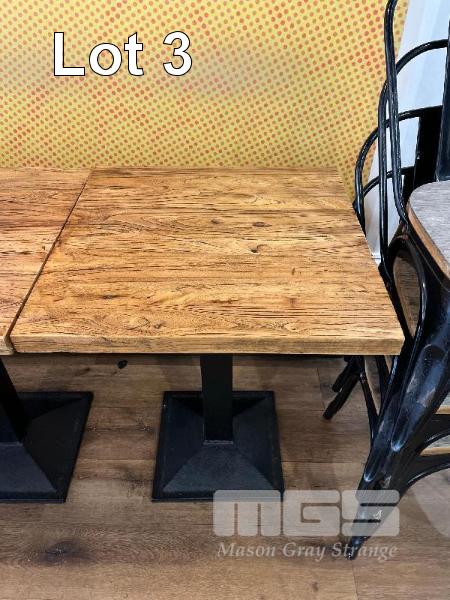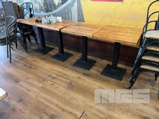 4 x CAFE TABLES, SOLID TIMBER, BLACK PEDESTAL BASE WITH 14 x ASSORTED CAFE CHAIRS