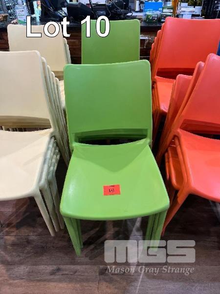 10 x CAFE CHAIRS, GREEN PLASTIC