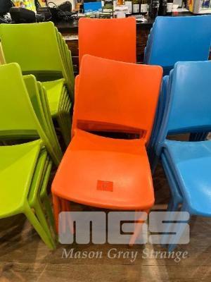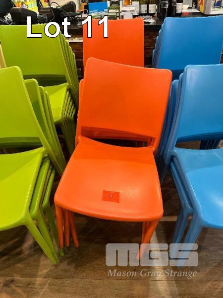 10 x CAFE CHAIRS, ORANGE PLASTIC