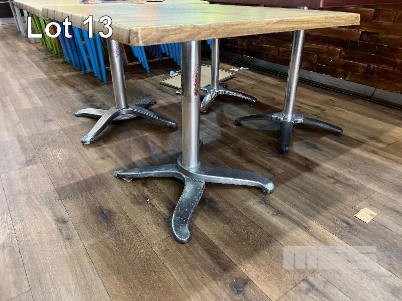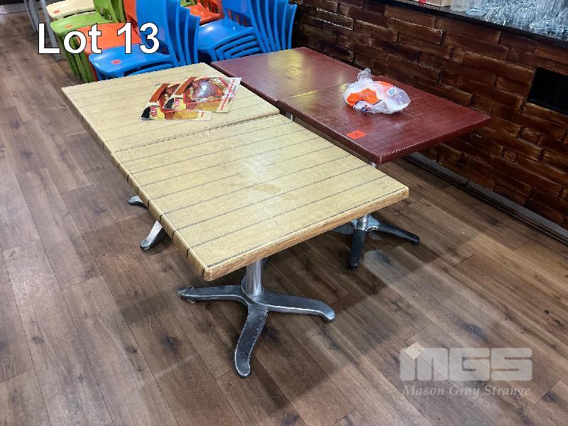 4 x CAFE TABLES, MOULDED TOP, CHROME PEDESTAL BASE INCLUDING 2 @ 700 x 700mm & 2 @ 800 x 800mm