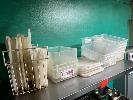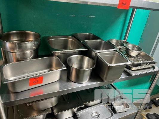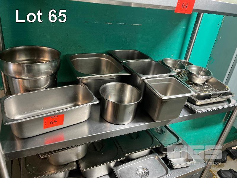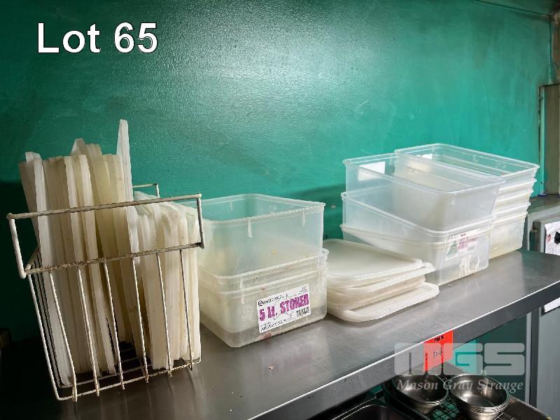 30 (APPROX) x STAINLESS STEEL GASTRONORM TRAYS, BOWLS & LARGE QUANTITY PLASTIC TUBS WITH LIDS