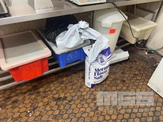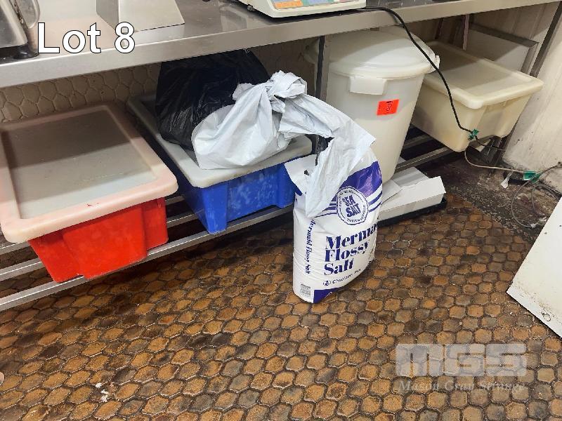 FOOD PRODUCTS & BINS, FLOUR, SALT, SPICE, INCLUDING 3 x PVC TUBS & FLOUR BIN