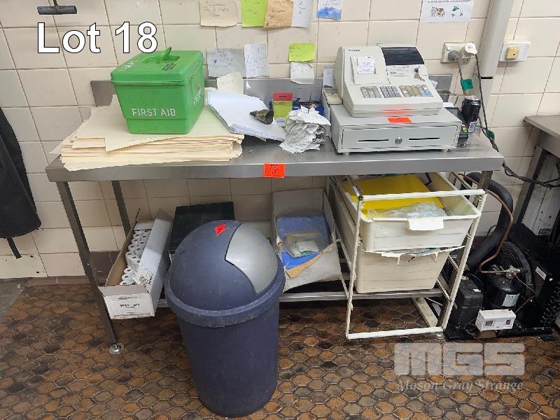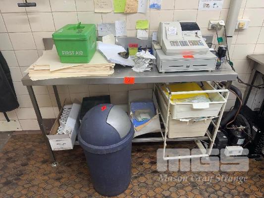 STAINLESS STEEL BENCH, 1500 x 550mm & 150mm SPLASHBACK & UNDERBENCH RAIL SHELF