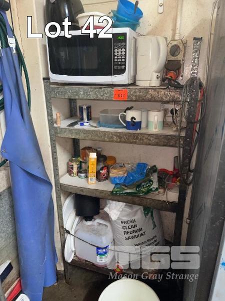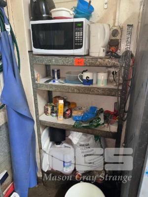 GALV SHELF UNIT & MICROWAVE, KETTLE, ETC