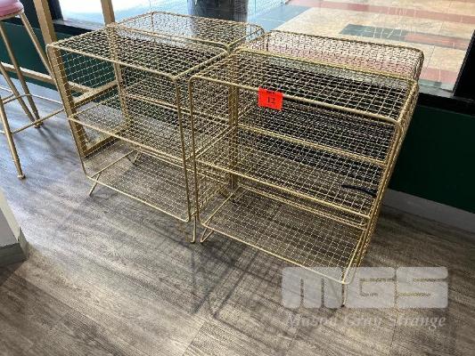 4 x WIRE STORAGE RACKS, GOLD STEEL FRAMES, 2 TIER, 600 x 300 x 700mm (H)