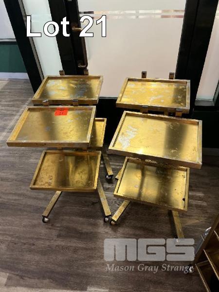 4 x SALON INSTRUMENT TROLLEYS, 2 TIER, GOLD STEEL FRAME