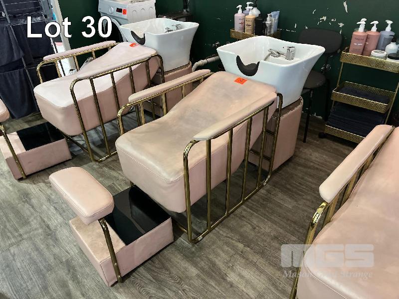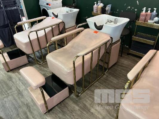 SALON HAIR WASH STATION, GOLD FRAME, PINK VINYL
