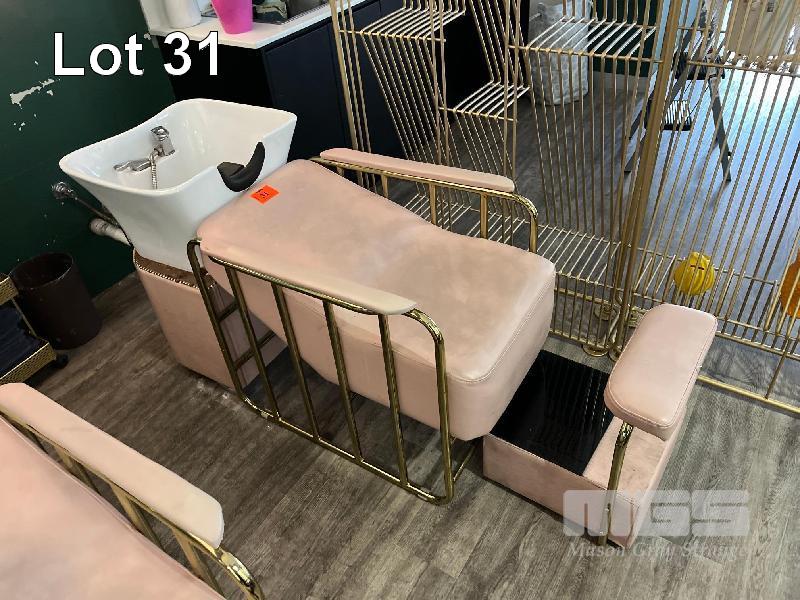 SALON HAIR WASH STATION, GOLD FRAME, PINK VINYL