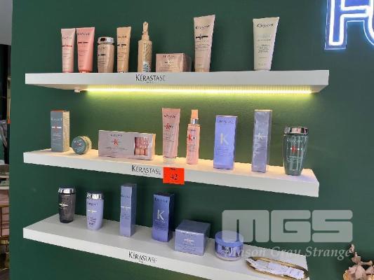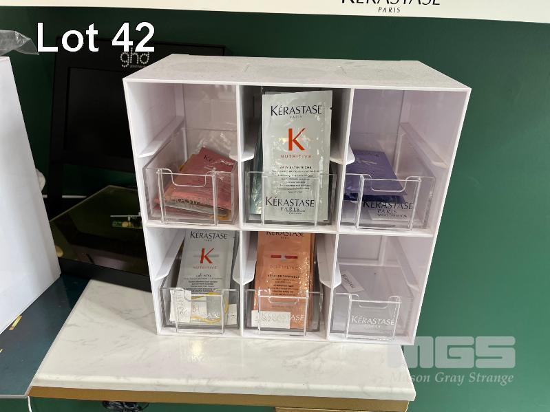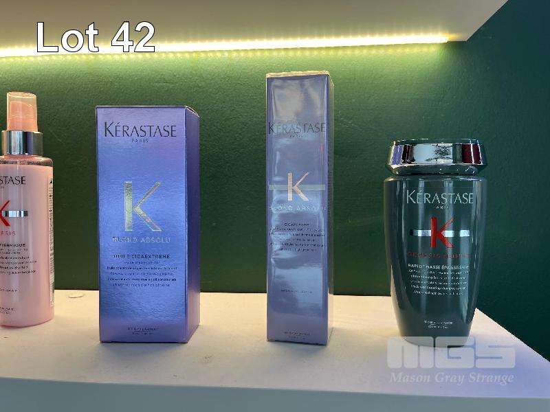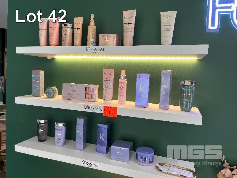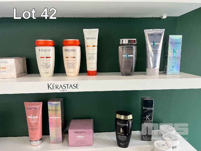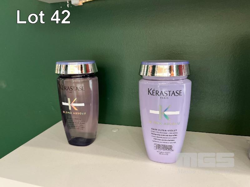CONTENTS OF 2 SHELVES, LARGE QUANTITY ASSORTED KERASTASE HAIR PRODUCTS