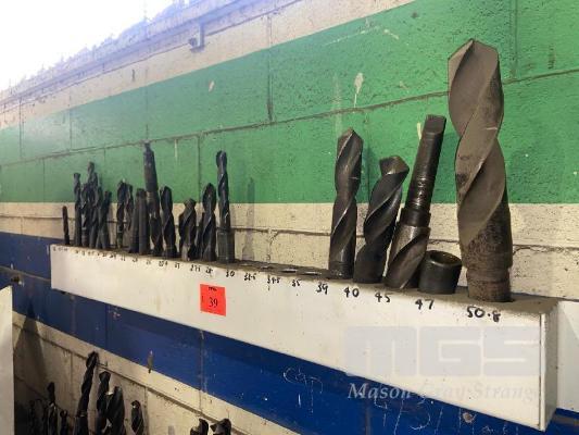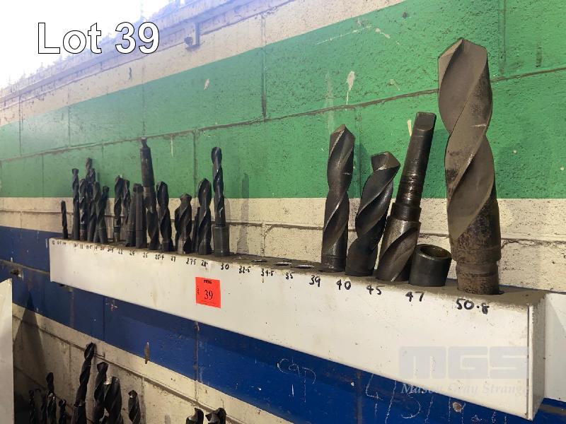 27 x ASSORTED M/T DRILL BITS & STAND, 12-50mm APPROX