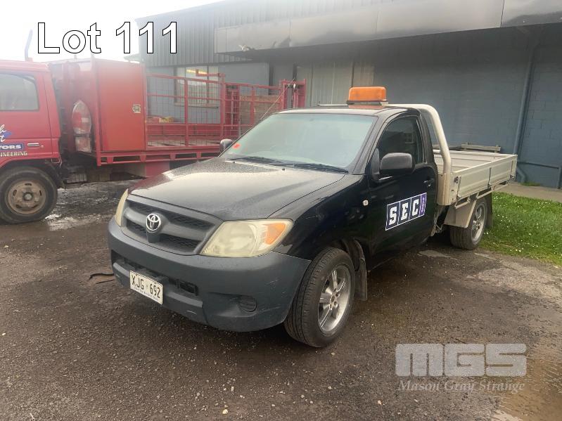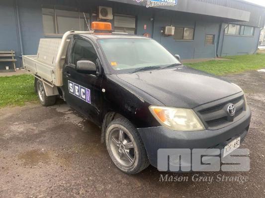 2006 TOYOTA HILUX TGN16R-TRMDKQ3 SINGLE CAB UTE 2WD REG: XJG 692 (SA) VIN: MROCX12G600013698 ODO: 264,053 4CYL 2.7L, MANUAL, PETROL, BLACK, 2 DOORS, 3 SEAT, 2WD ALLOY TRAY, ALLOY WHEELS, TOOL BOX, TOW BAR, NOTE: BLOWING WHITE SMOKE (NO PAPERS, WITH 1 KEY/S, NO OWNER'S MANUAL, NO SERVICE BOOKS) CONDITION: DRIVERS DOOR - DAMAGED