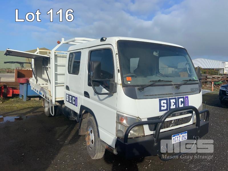 2010 MITSUBISHI CANTER 3.5T FE84DEWSRFAB CREW CAB TRAYTOP TRUCK REG: 1GTZ 052 (WA) GVM: 4500kg 4 DOORS, 7 SEAT, STEEL TRAY 3400 x 2400mm (W) TOOL BOX PIPE RACK NOTE: NOT RUNNING, RUST EVIDENT ON CHASSIS (NO PAPERS, NO OWNER'S MANUAL, NO SERVICE BOOKS)
