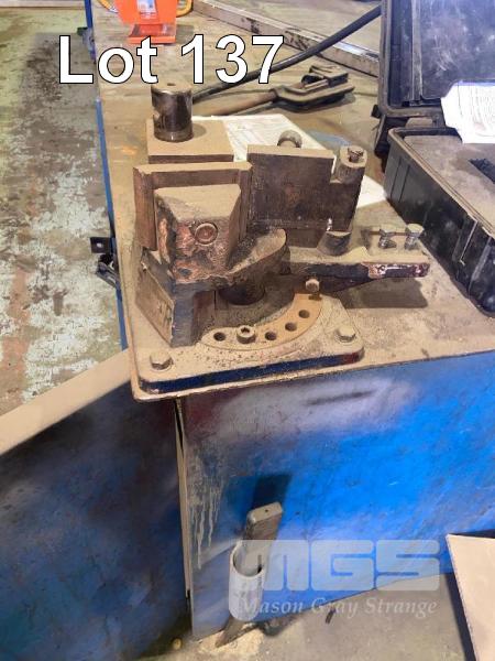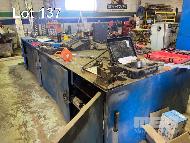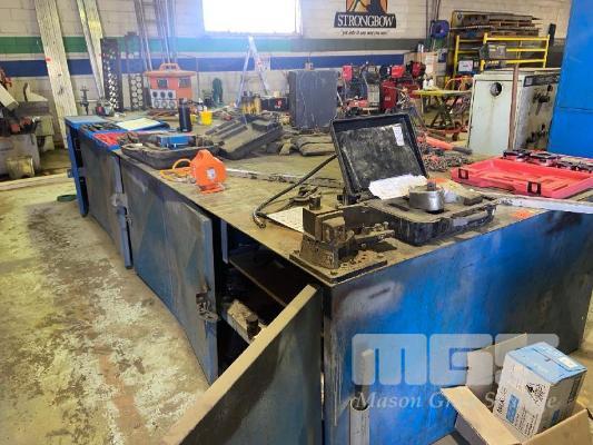 LARGE WORKSHOP BENCH, 4800 x 1800mm 6mm PLATE TOP INCLUDES BAR BENDER, 65mm & 5" VICE