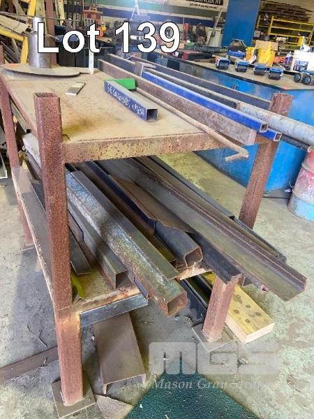 2 TIER STEEL SHELF & CONTENTS, OFFCUTS, STEEL ANGLE, PIPE, RHS