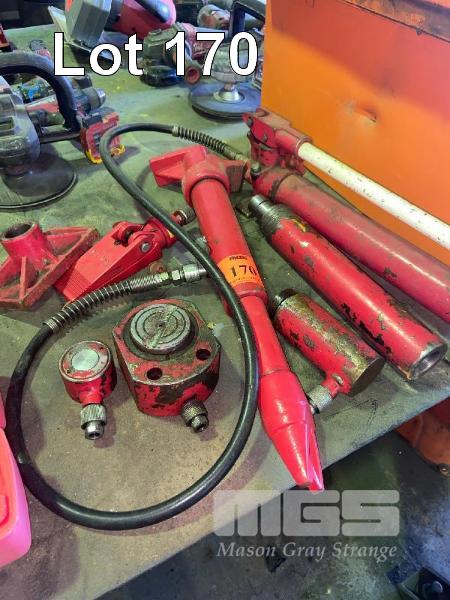 PORTABLE HYDRAULIC HAND PUMP & RAM AND ACCESSORIES.