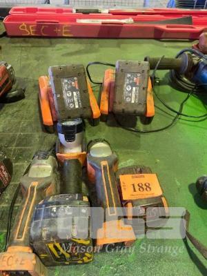 3 x CORDLESS LED TORCHES, RAMSET, 2 x CHARGERS & 4 x BATTERIES