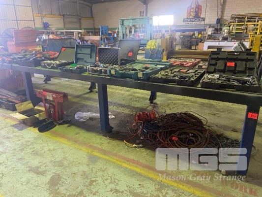 STEEL BENCH, 5700 x 1800mm (W), HEAVY DUTY, PLATE TOP, 8 x LEGS