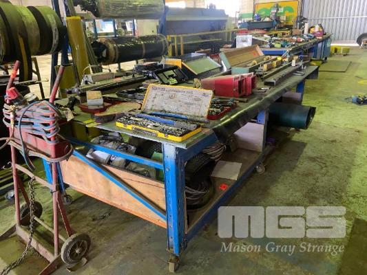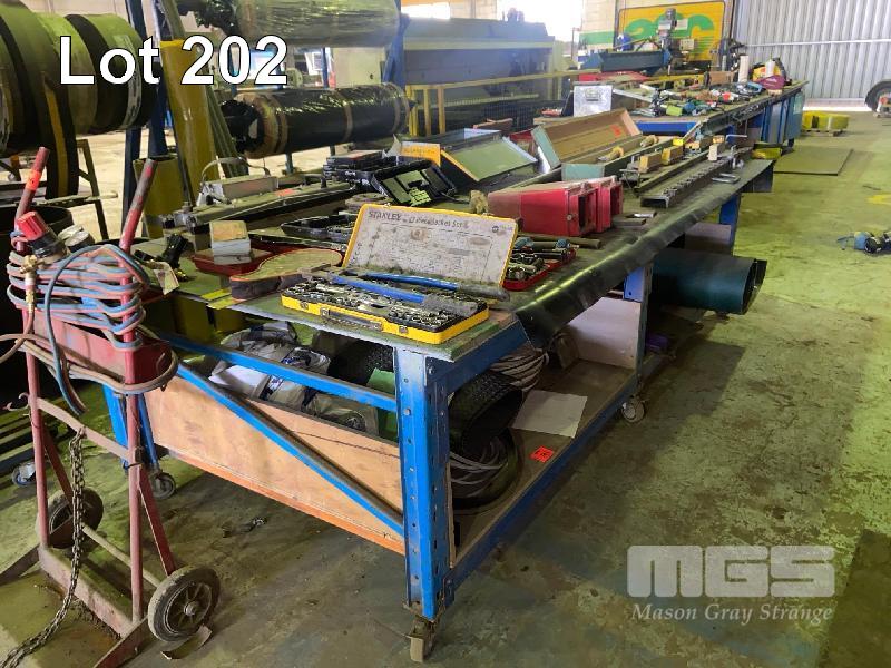 WORK BENCH, 2900 x 1400mm, STEEL FRAME, PLYWOOD TOP, MOBILE