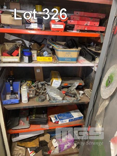 STEEL PLATE CABINET, 1700mm & CONTENTS INCLUDING TRAILER PLUGS HARDWARE, SCALES, HELLA FITTINGS, PULLEY BLOCK, ETC