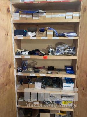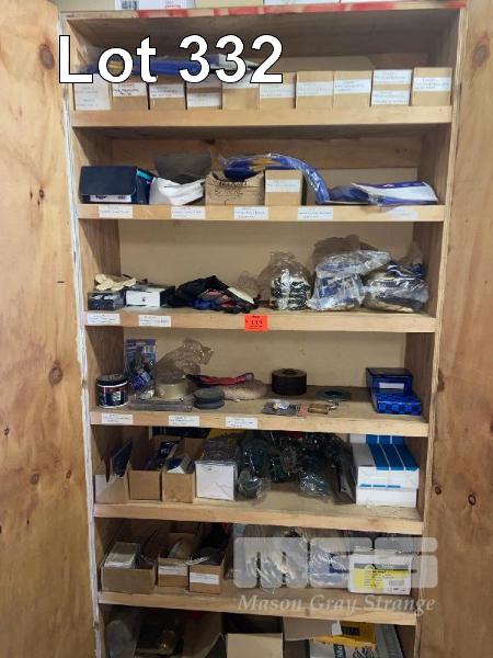 CONTENTS OF CUPBOARD INCLUDING SAFETY GLOVES, WELDING, OXY GOGGLES, STONES, TIPS, WIRE ROPE, ETC & AIR HOSE