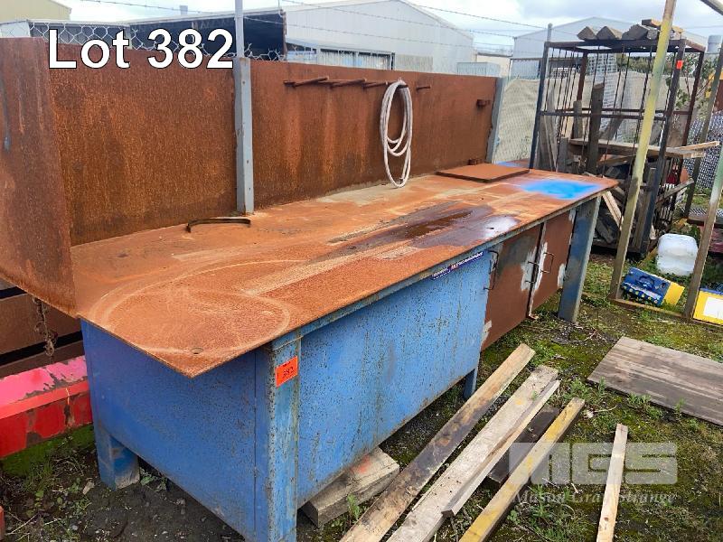 WELDERS BENCH & CABINET BASE, 3300 (L) x 900 (W) x 10mm (T) & BACKBOARD