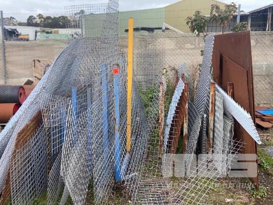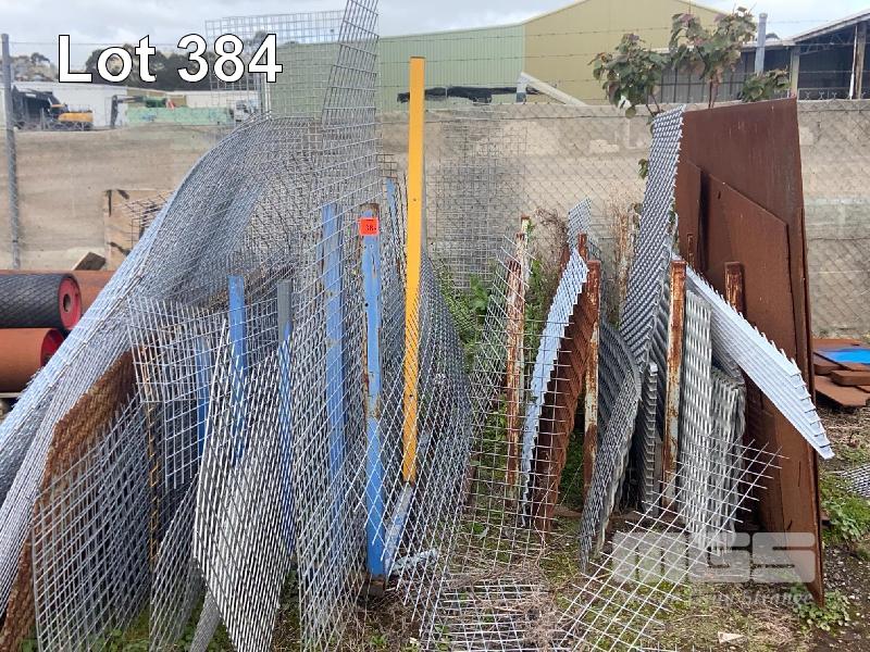 2 x UPRIGHT RACKS, (STEEL) WITH QUANTITY OFFCUT PERFORATED & WELDED MESH PANELS, (NOT PLATE)