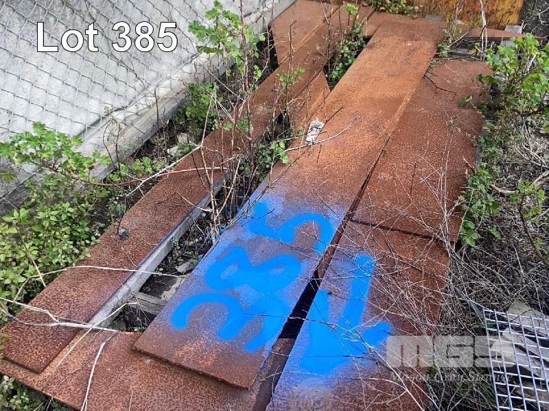 8 x OFFCUT SHEETS STEEL PLATE, 6-10mm (T) & BLOCK 50mm THICK ON PALLET & ON GROUND (AS MARKED)