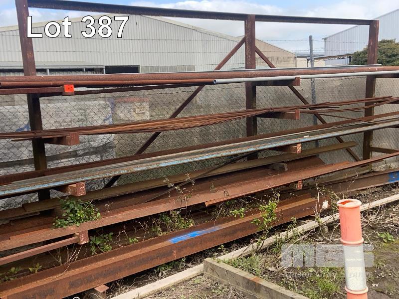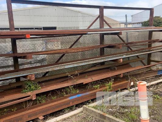 STEEL STOCK RACK, 5 TIER, 6m & CONTENTS INCLUDING, PIPE, ANGLE, TUBE, FLAT, UB UP TO 7m
