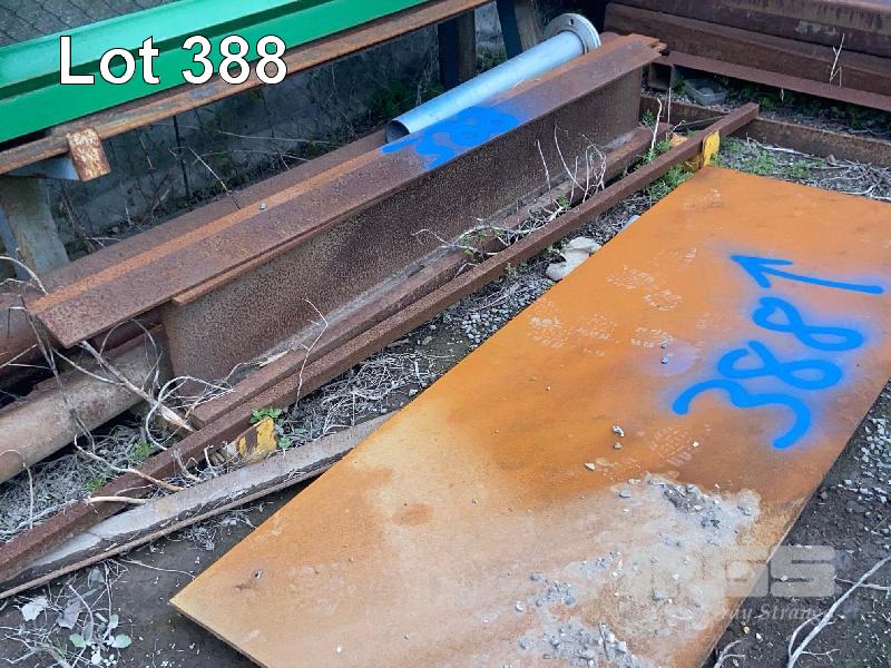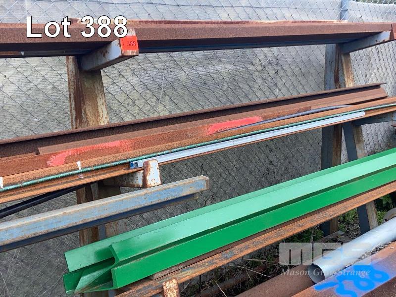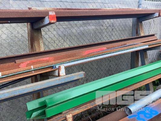 ANGLE STEEL STOCK RACK, 4 TIER WITH CONTENTS INCLUDING, C-CHANNEL, UB, PIPE & PIECE OF OFFCUT CUT PLATE, 10mm (T), UP TO 3m