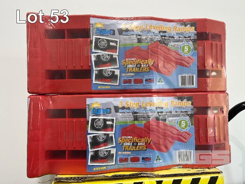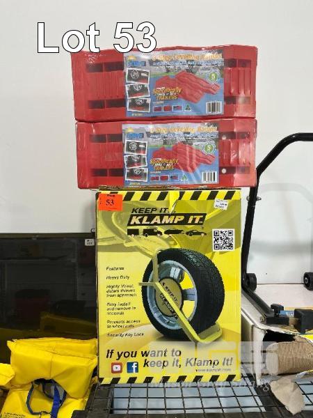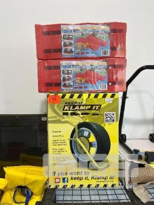 2 x KLAMP IT WHEEL CLAMPS, 2 x SETS LEVELLING RAMPS